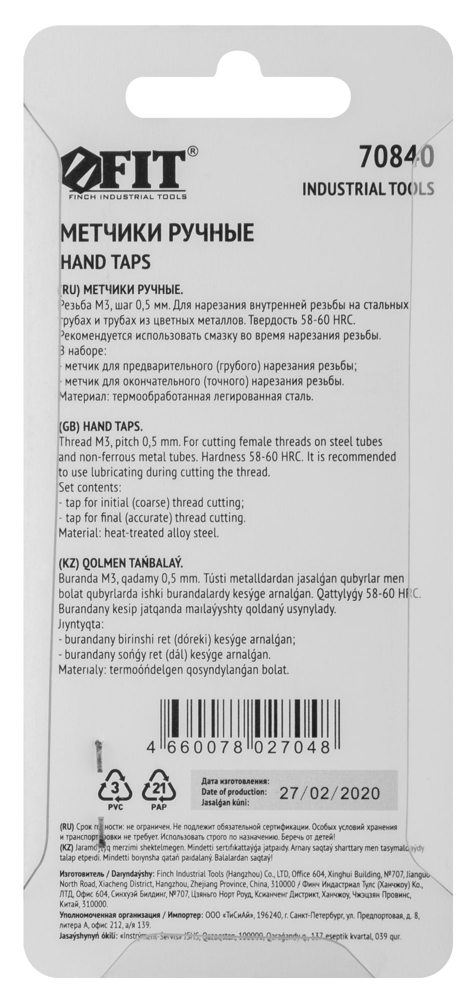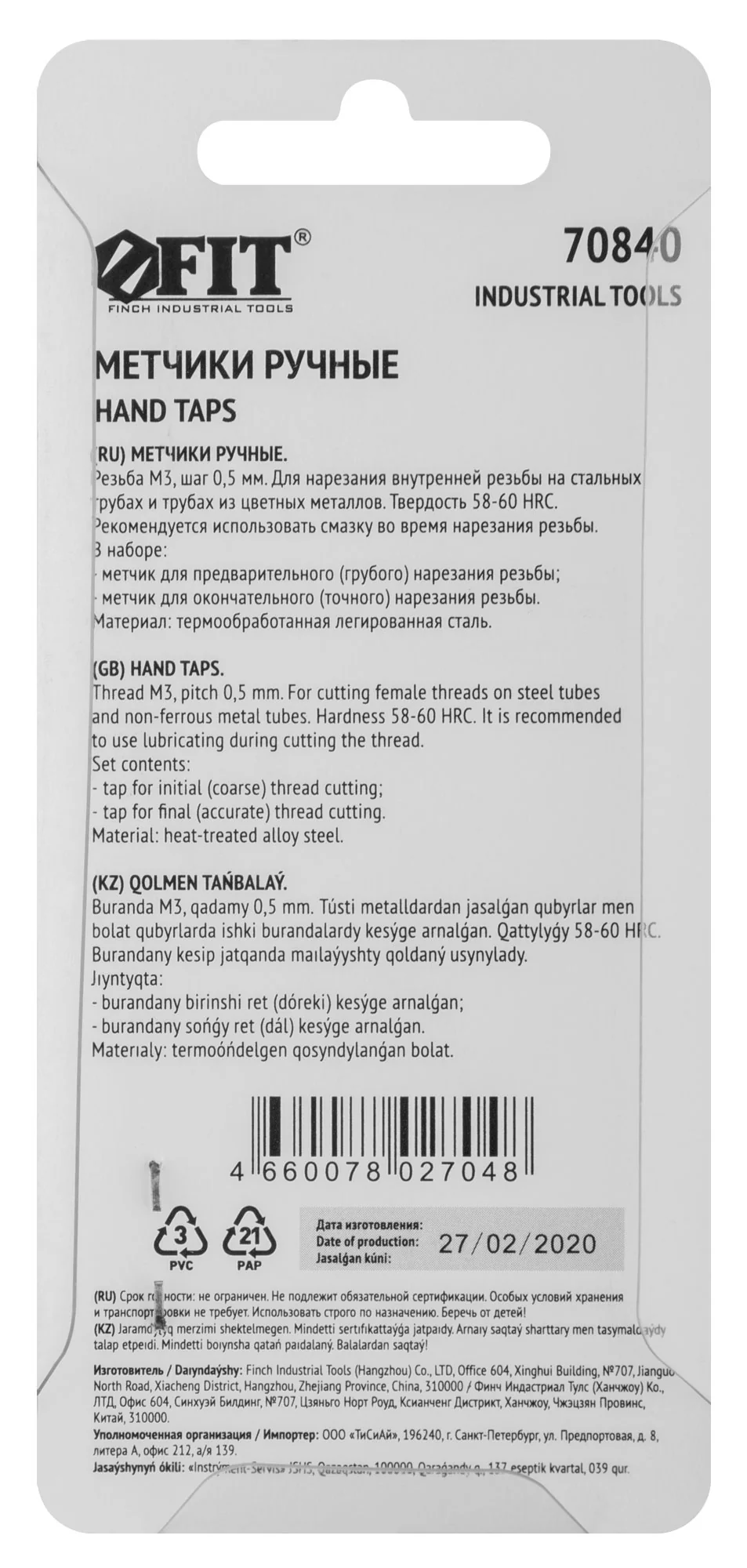 Выберите набор метчиков FIT 70840, чтобы обеспечить точность и надежность в работе с резьбой.