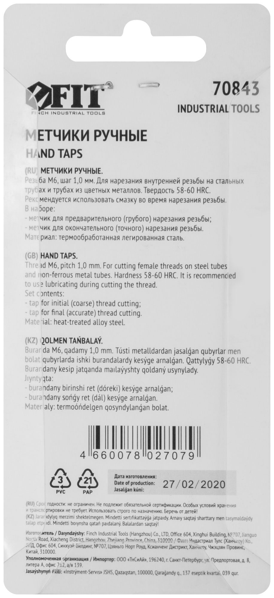 Выберите набор метчиков FIT 70843, чтобы обеспечить качественное и надежное нарезание резьбы в любых условиях.