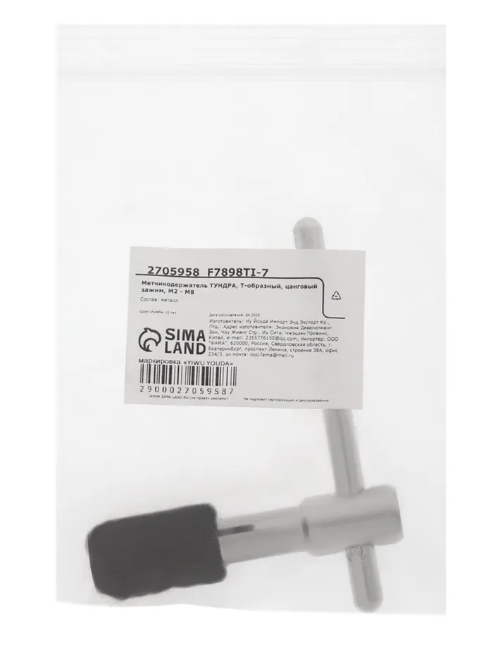 Метчикодержатель ТУНДРА, Т-образный, цанговый зажим, М2 - М8 — Характеристики