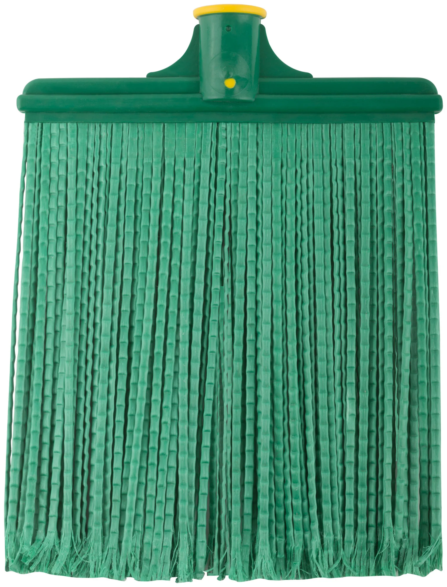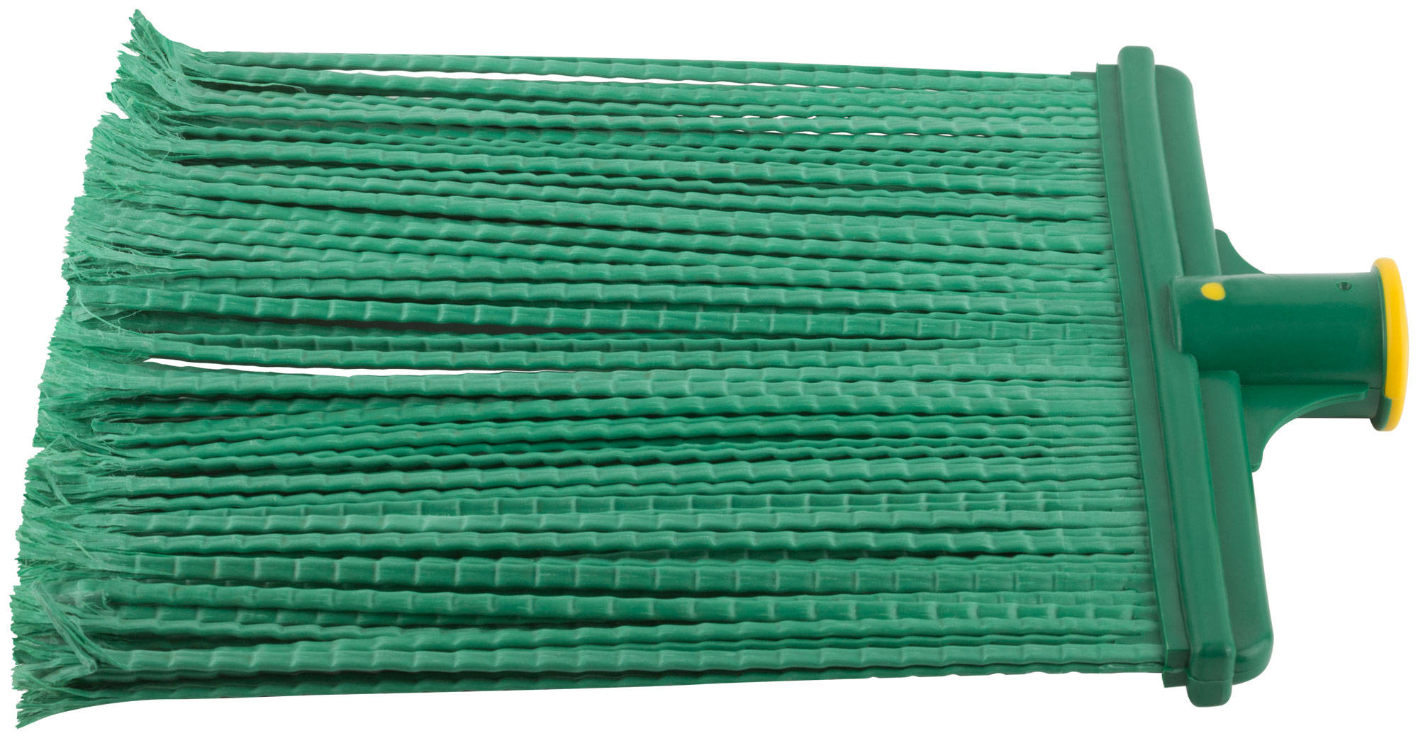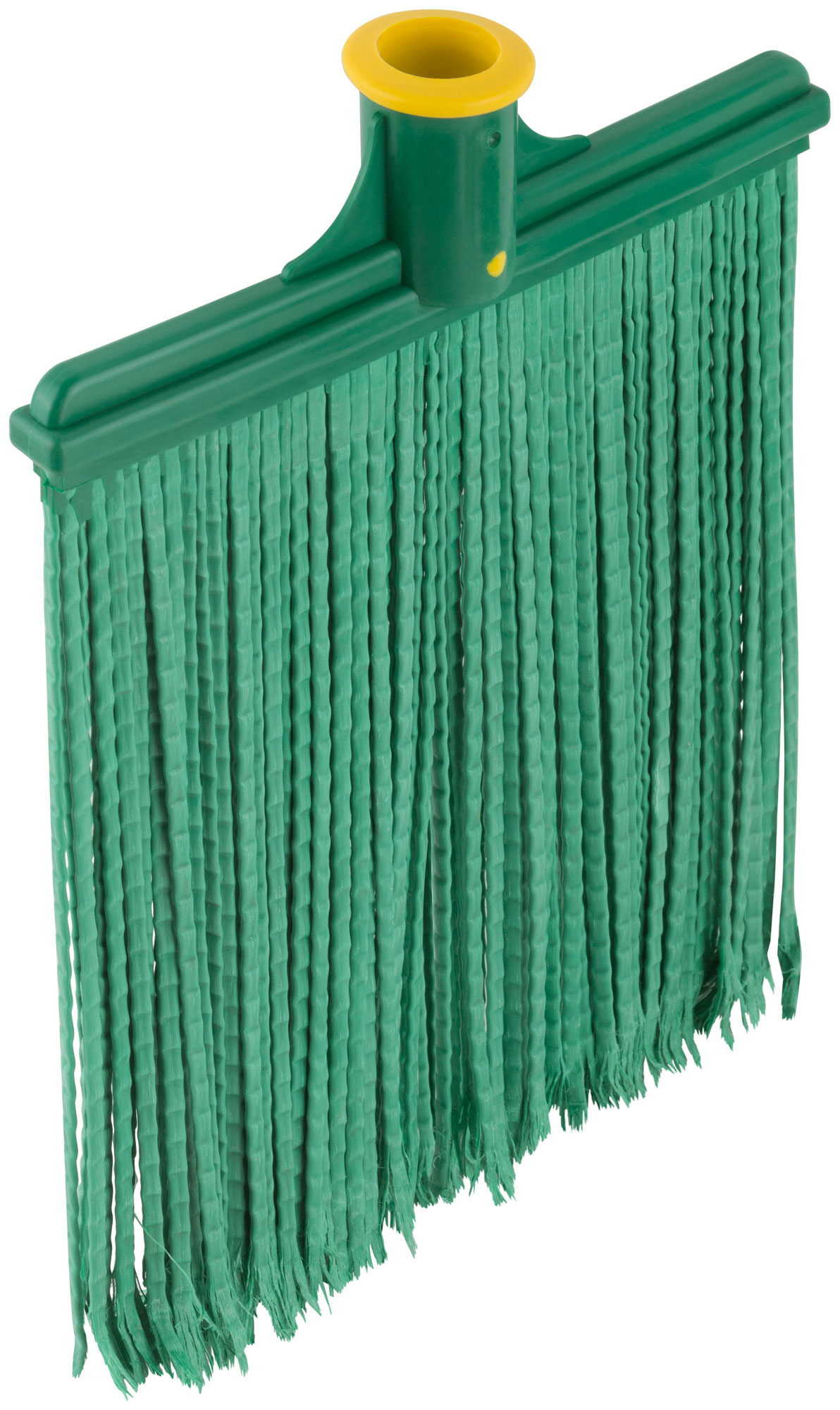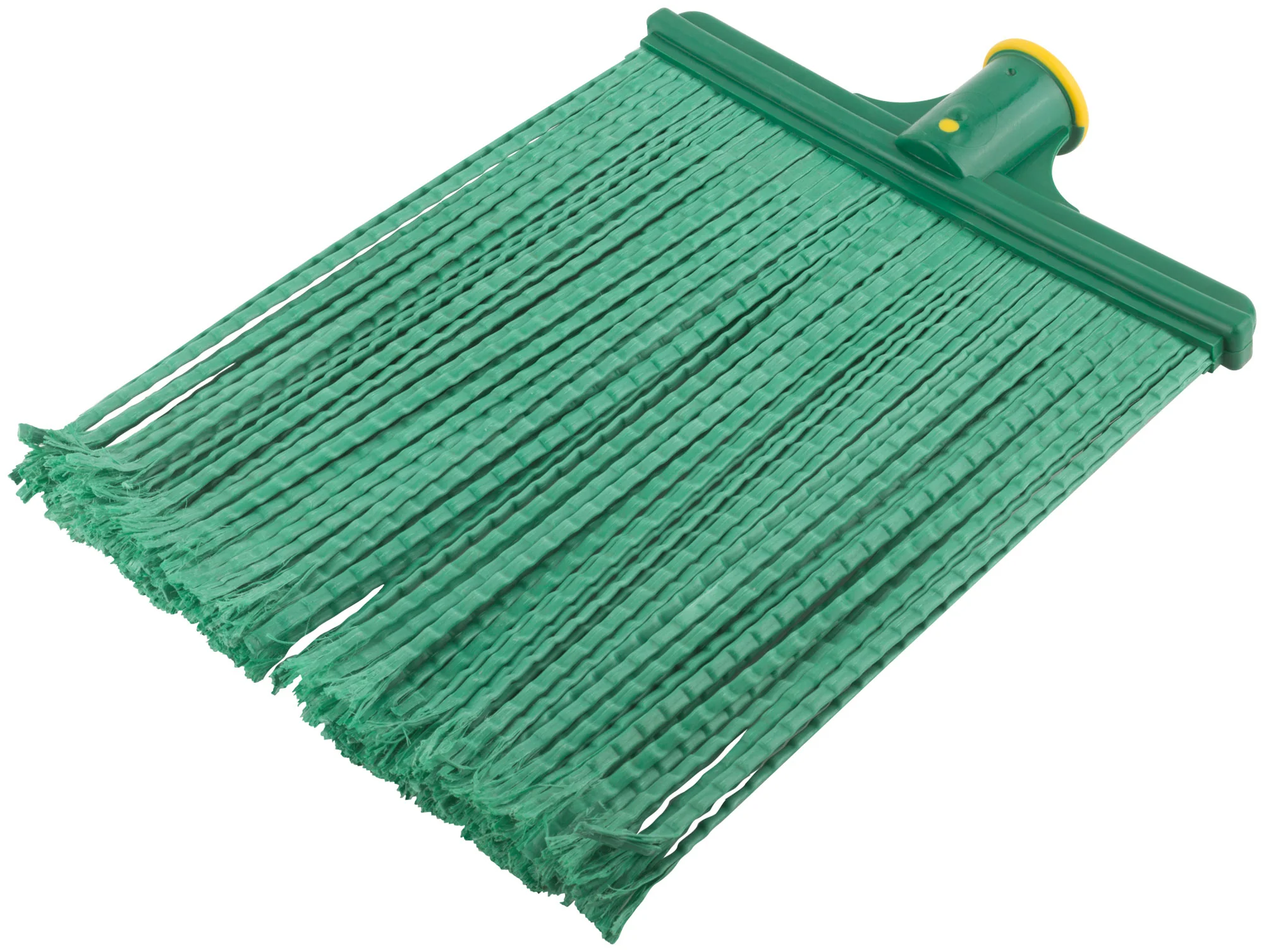 Метла изготовлена из пластика, что обеспечивает лёгкость и долговечность. Щетина расщеплена на концах, что улучшает качество уборки, позволяя захватывать даже мелкие частицы мусора. Посадочный диаметр 25 мм подходит для использования с обычными деревянными черенками и черенками с резьбовым наконечником.