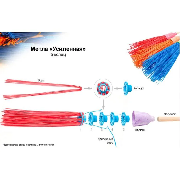 Метла полипропиленовая, круглая, наборная «Усиленная», с черенком, 5 колец, МИКС — Характеристики