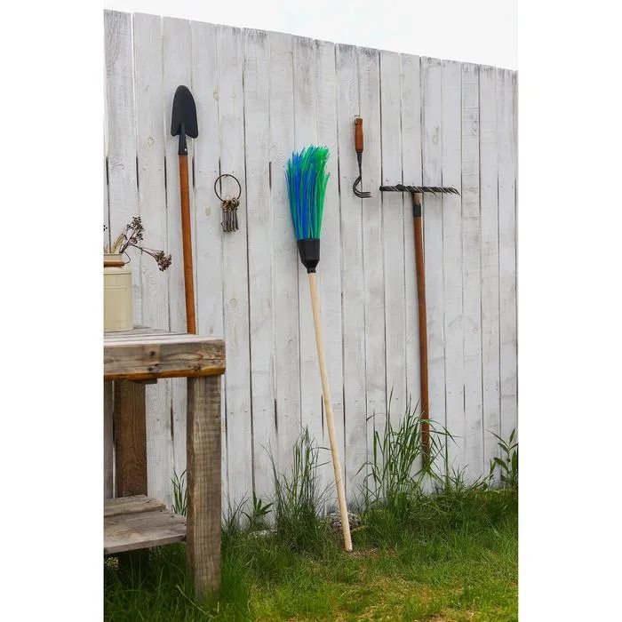 Метла подходит для уборки сухой и мокрой листвы, снега, грязи и другого мусора. Инструмент состоит из пластиковой насадки и берёзового черенка. Если исключить контакт с щелочами и кислотами, то оно прослужит больше двух лет.