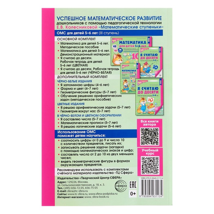Данное учебно-методическое пособие входит в третью часть УМК авторской парциальной образовательной программы «Математические ступеньки». Пособие лучше использовать в комплекте с рабочей тетрадью «Я считаю до десяти», в которой представлены учебно-игровые задания для ребёнка 5–6 лет и демонстрационным материалом «Математика для детей 5–6 лет».