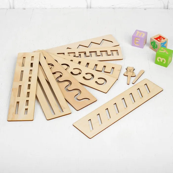 Деревянные линейки помогут ребёнку подготовить руку к письму, развить тактильное восприятие и внимательность. Упражнения с фигурками учат ориентироваться в пространстве, а тактильные задания пробуждают интерес к сенсорному познанию. Методика игры построена на естественном исследовании, что делает процесс увлекательным и полезным.