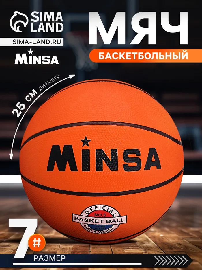 Мяч баскетбольный MINSA, клееный, 8 панелей, р. 7, резина, резиновая камера — Характеристики