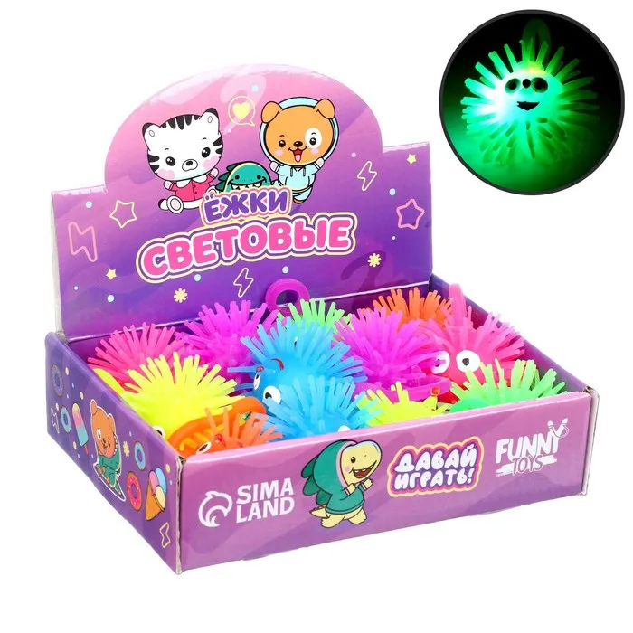 Мяч детский резиновый ёжка световой «Зверята», цвета МИКС, в шоубоксе — Характеристики