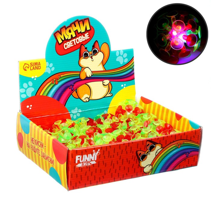 Мяч детский резиновый световой «Котик», липучки, цвета МИКС, в шоубоксе — Характеристики