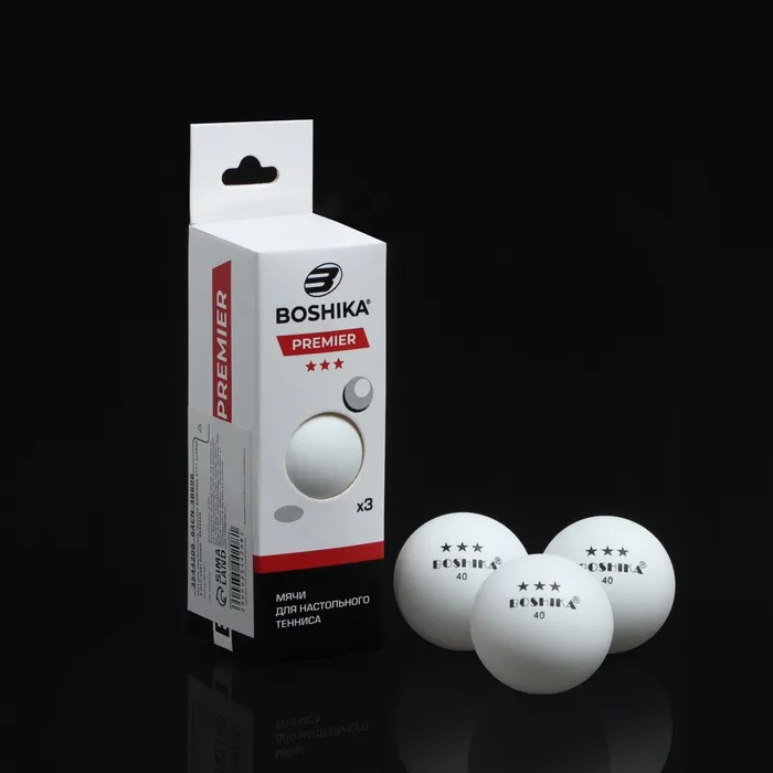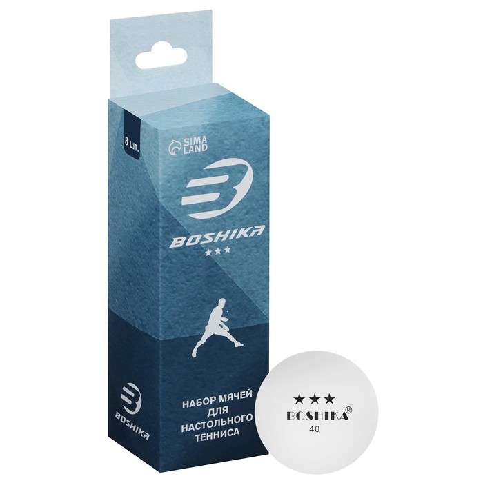 Мяч для настольного тенниса BOSHIKA 3***, набор 3 шт., PP, цвет белый — Характеристики