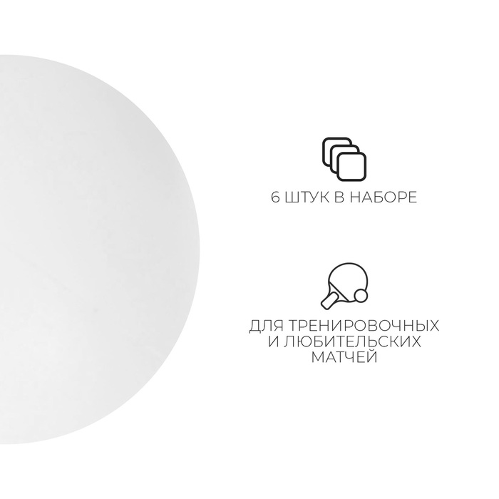 Мяч для настольного тенниса, набор 6 шт., PP, цвет белый — Характеристики