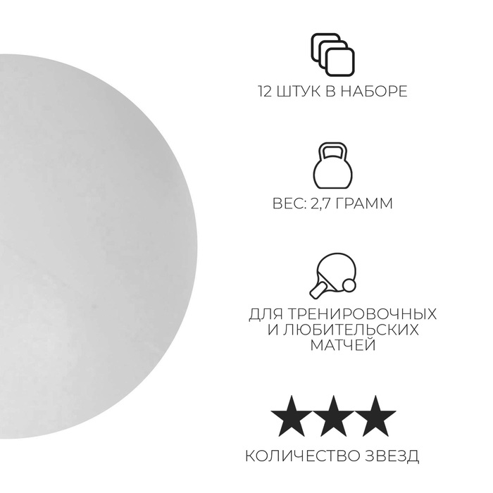 Мяч для настольного тенниса Premier 3***, набор 12 шт., ABS, цвет белый — Характеристики