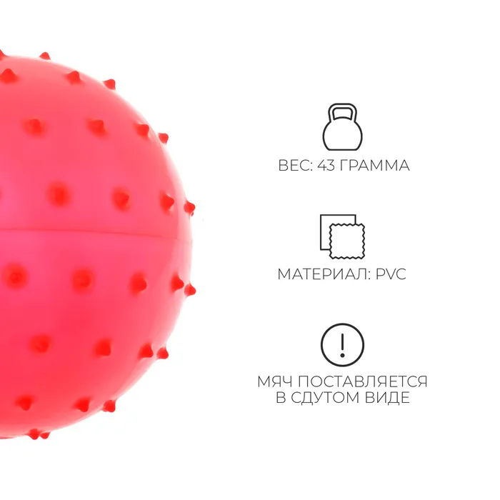 Массажный мяч предназначен для физического воздействия на биологически активные точки на теле человека. Используется для общего оздоровления организма, укрепления иммунитета, расслабления, снятия физического и психоэмоционального напряжения.