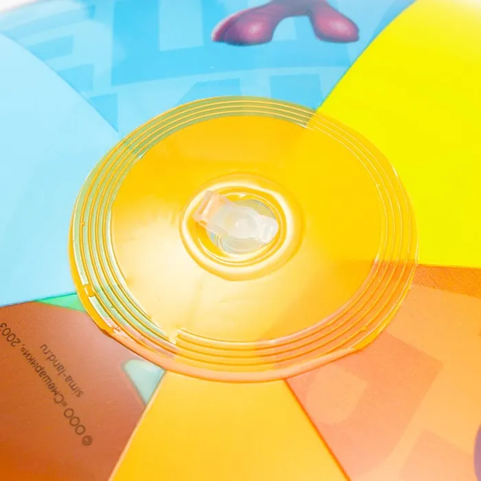 Мяч изготовлен из прочного ПВХ с ярким принтом, который не выгорает на солнце. Накачивается любым насосом со специальной иглой для надувки мячей. Размер - 51 см. Рекомендуемый возраст - от 3 лет.