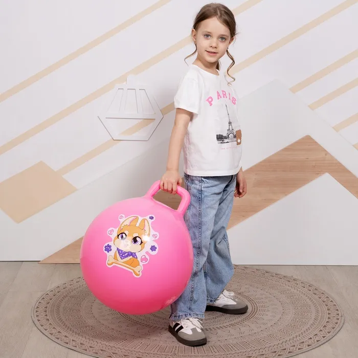 Мяч - прыгун с ручкой ZABIAKA «Корги», d=45 см, розовый — Характеристики