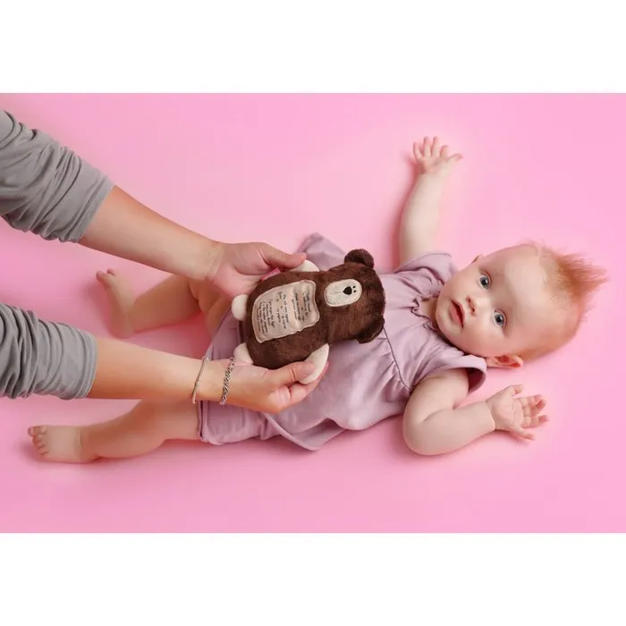- Извлеките подушечку с вишнёвыми косточками из корпуса игрушки, поместите её в микроволновую печь. Максимальное время нагрева при мощности 600 Вт – 40 секунд.