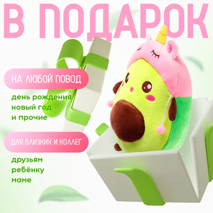 Мягкая игрушка «Авокадо», в шапочке, единорог, 24 см — Характеристики