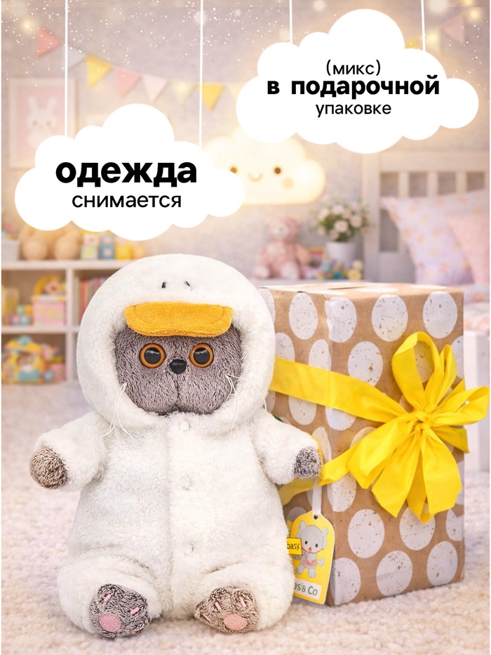 Мягкая игрушка «Басик baby в комбинезоне Гусик» — очаровательный котёнок в нежном плюшевом образе. Белоснежный комбинезон с капюшоном и клювиком превращает Басика в милого гуся, а пушистая фактура делает игрушку особенно приятной на ощупь. Этот малыш вызывает улыбку с первого взгляда и идеально подойдёт в подарок или для уютного декора детской комнаты.