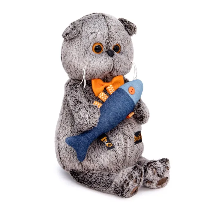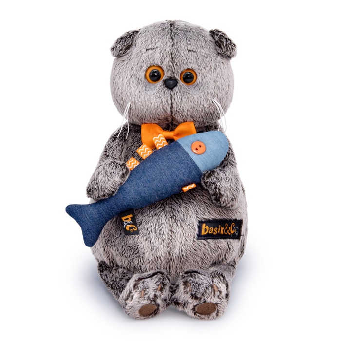 Мягкая игрушка «Басик с джинсовой рыбкой», 19 см — Характеристики