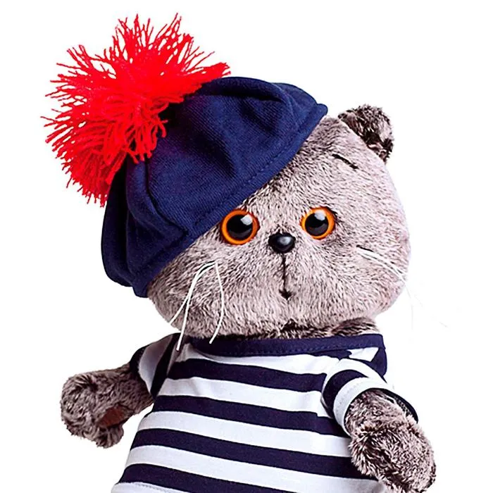 Игрушка сделана из искусственного меха, плотно набита полимерным волокном. Поэтому Басик не вызывает аллергии, не линяет, не точит когти о диван и принимает забавную позу, если его посадить. А умная мордочка будет всегда поднимать настроение его владельцам.