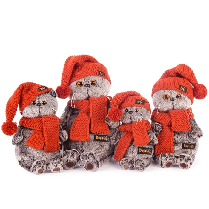 Мягкая игрушка «Басик» в вязаной шапке и шарфе, 22 см — Характеристики