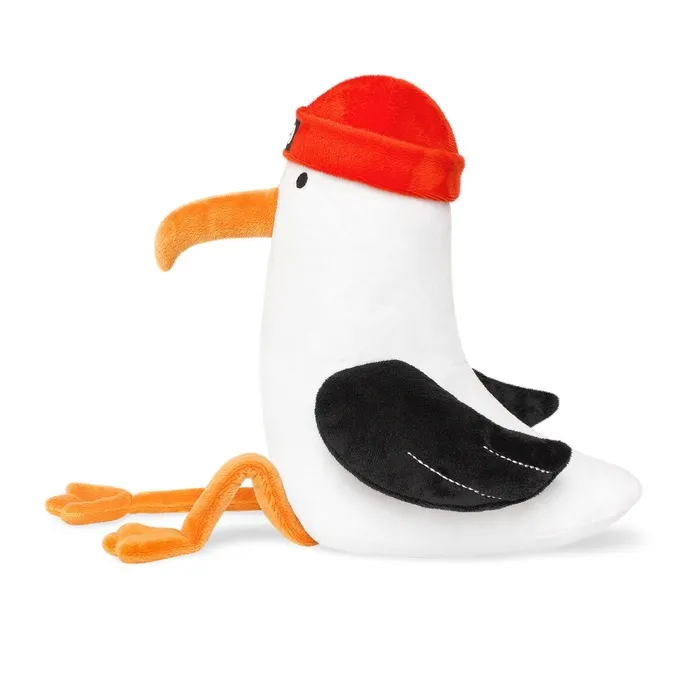 - Игрушка выполнена в виде очаровательной чайки с мягкой текстурой искусственного меха и наполнителем из синтепона.