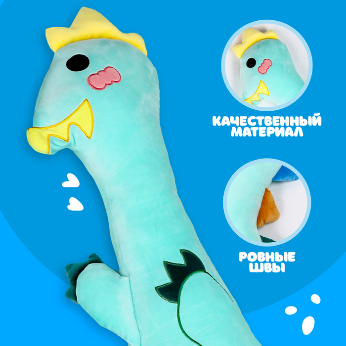 Динозавра удобно обнимать, на него можно опереться, посадить рядом или использовать как декоративный акцент в комнате. Он дарит ощущение комфорта и вызывает улыбку одним своим видом — идеальный спутник для чтения, просмотра мультфильмов или спокойного времяпрепровождения.
