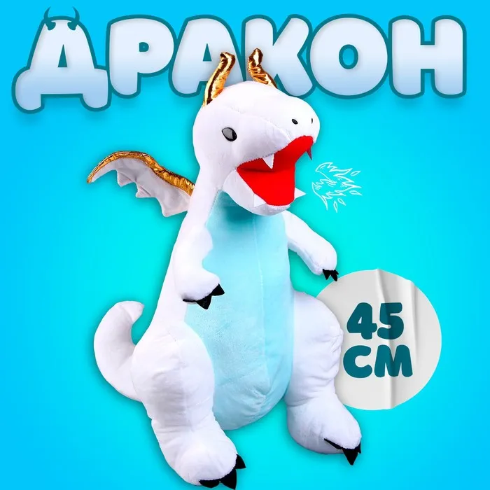 Мягкая игрушка «Дракон», с золотыми крыльями, 45 см, цвет белый — Характеристики