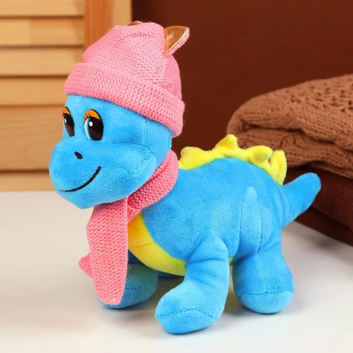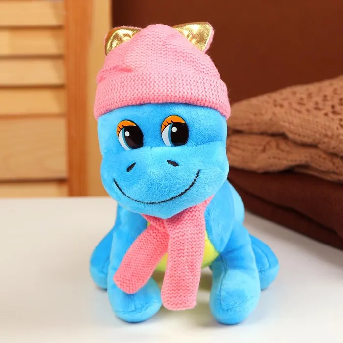 Мягкая игрушка «Дракон», в розовой шапке, 21 см, цвет синий — Характеристики