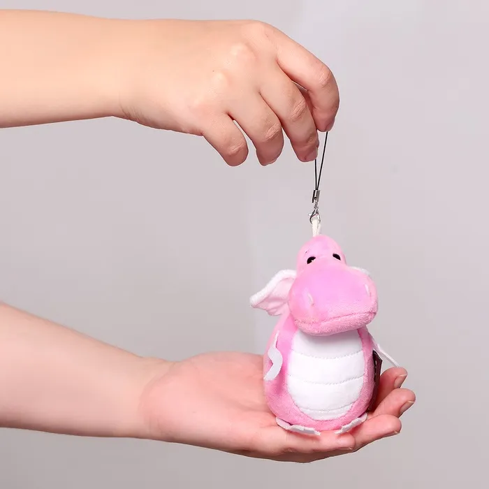 - Игрушка выполнена в виде милого дракончика с белым животиком и удобной подвеской.
