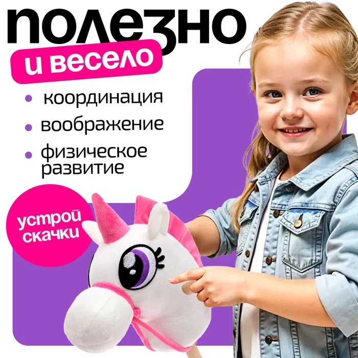 Мягкая игрушка «Единорог-скакун», на палке, МИКС — Характеристики