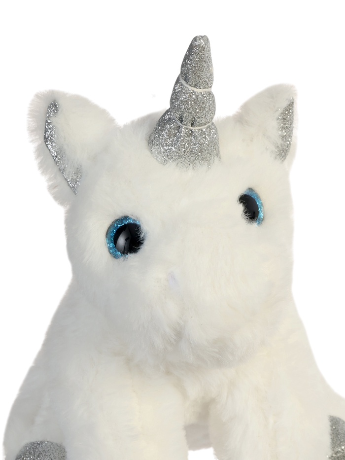 - Серебристый блестящий рог, ушки и копытца подчёркивают сказочный образ.