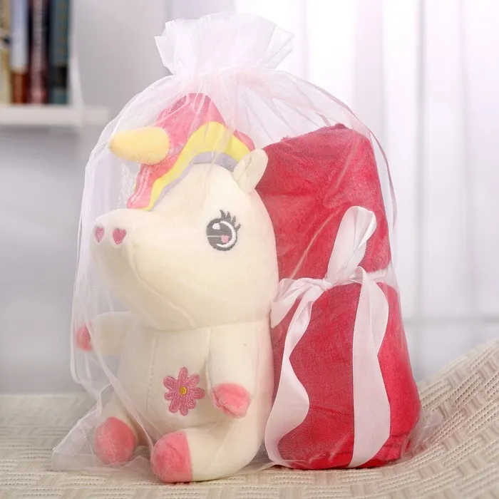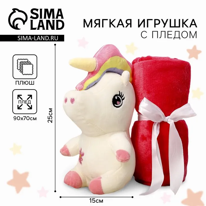 - В комплекте — игрушка-единорожка и удобный плед, идеально подходящий для отдыха или игр.