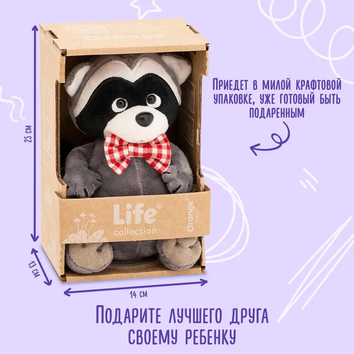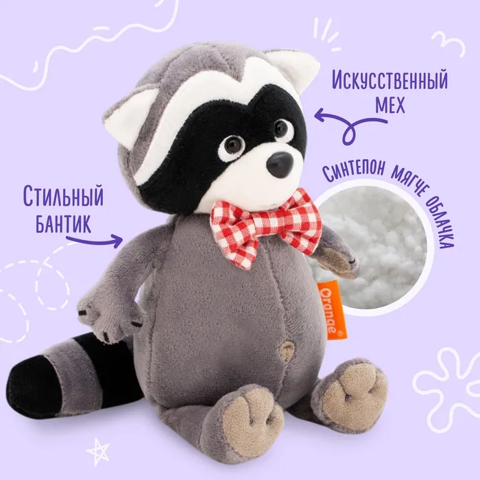 Мягкая игрушка «Енотик Дэнни в бабочке», 20 см — Характеристики