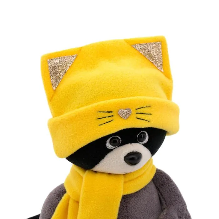 Мягкая игрушка «Енотик Дэнни» в шапке котёнка 20 см — Характеристики