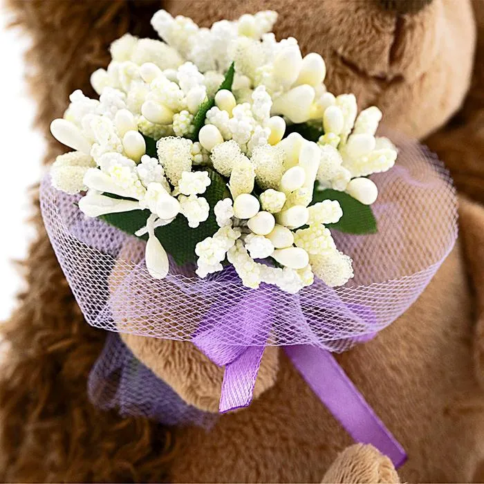 - Игрушка изготовлена из искусственного меха и наполнена синтепоном, что делает ее мягкой и приятной на ощупь.