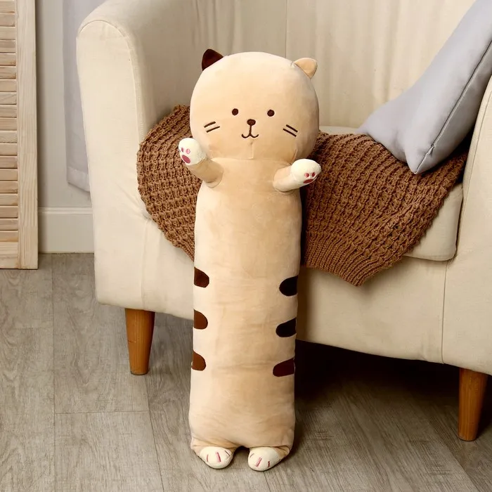 Мягкая игрушка-подушка «Котик-полосатик», 65 см, цвет бежевый