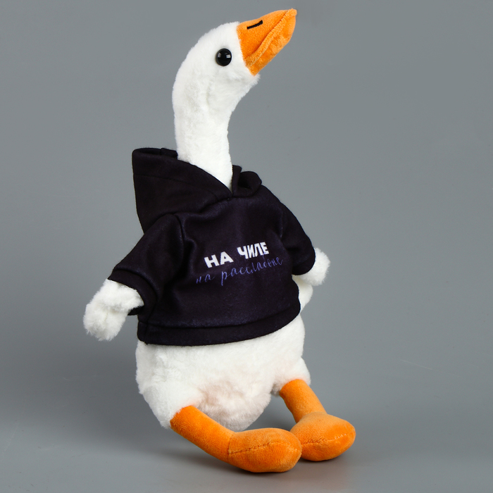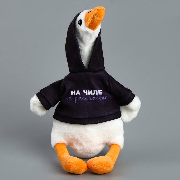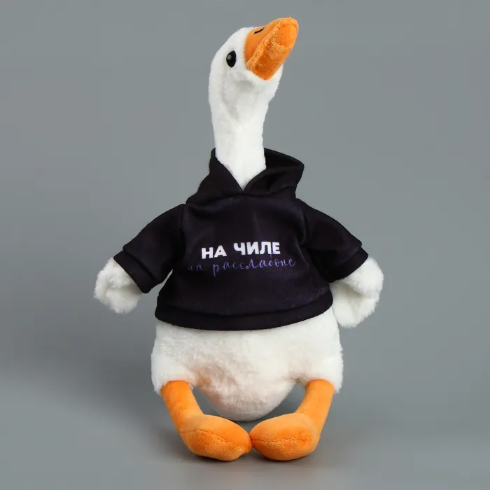 Мягкая игрушка в виде гуся в кофте с надписью «На чиле, на расслабоне» — это забавный и оригинальный аксессуар, который станет ярким акцентом в любом интерьере или отличным подарком для близких.