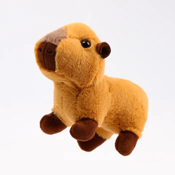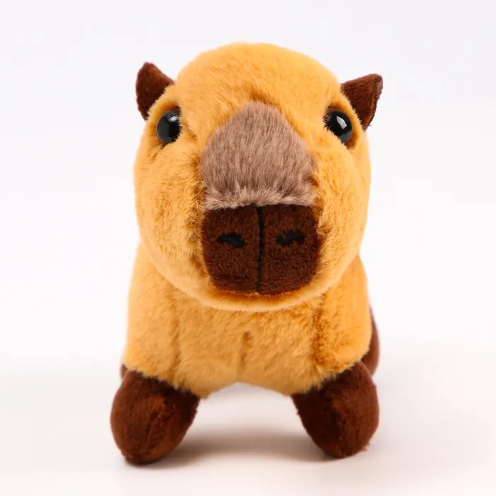 - Брелок выполнен в виде очаровательного капибарчика с мягким покрытием.