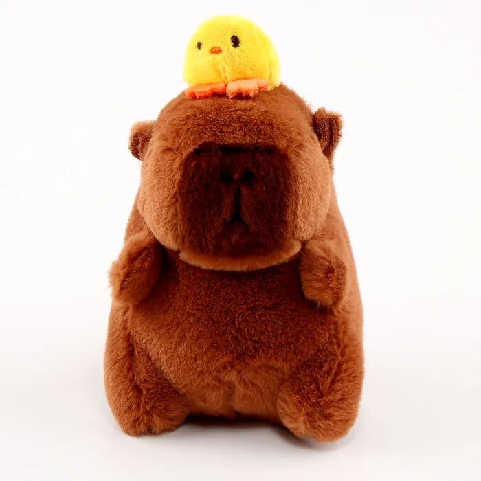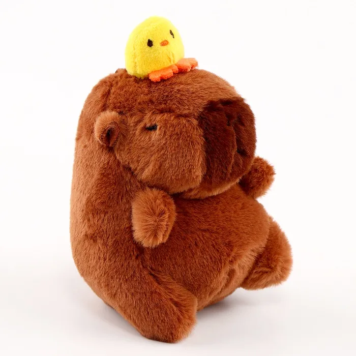 Капибара — это самый крупный грызун в современном мире. Благодаря своему забавному внешнему виду он приобрёл популярность среди детей и взрослых. Мягкая игрушка в виде капибары с милым цыплёнком на голове станет отличным другом для вашего малыша.