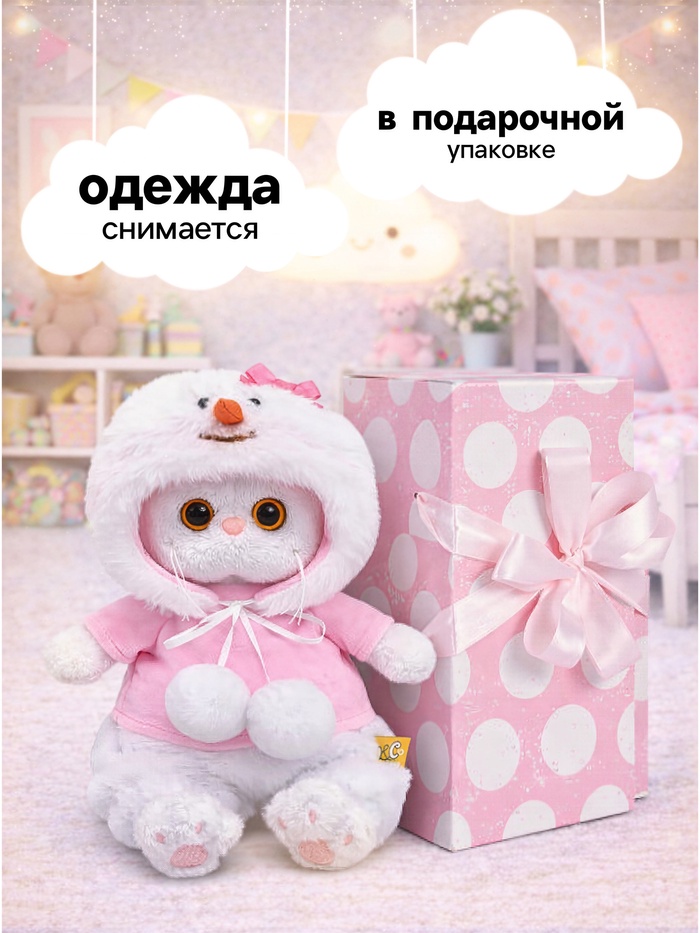 Мягкая кошечка Ли-Ли baby в костюмчике «Снеговик» создаёт атмосферу тепла и зимней сказки. Белоснежная шерстка, выразительные глаза и нежный розовый наряд делают игрушку особенно трогательной. Объёмный капюшон со снеговичком и пушистые помпоны смотрятся уютно и вызывают улыбку, а мягкий мех приятно ощущается в руках. Игрушка подходит для игр, украшения комнаты и милых подарков, легко становится любимой благодаря доброму и нежному образу.