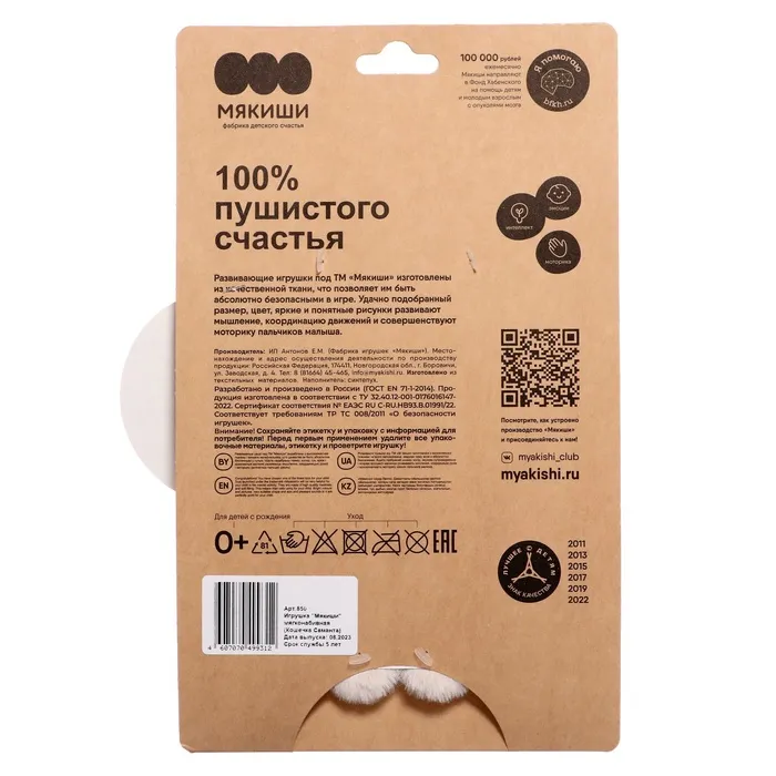 - Размер удобен для игр, объятий или использования как декоративный элемент.