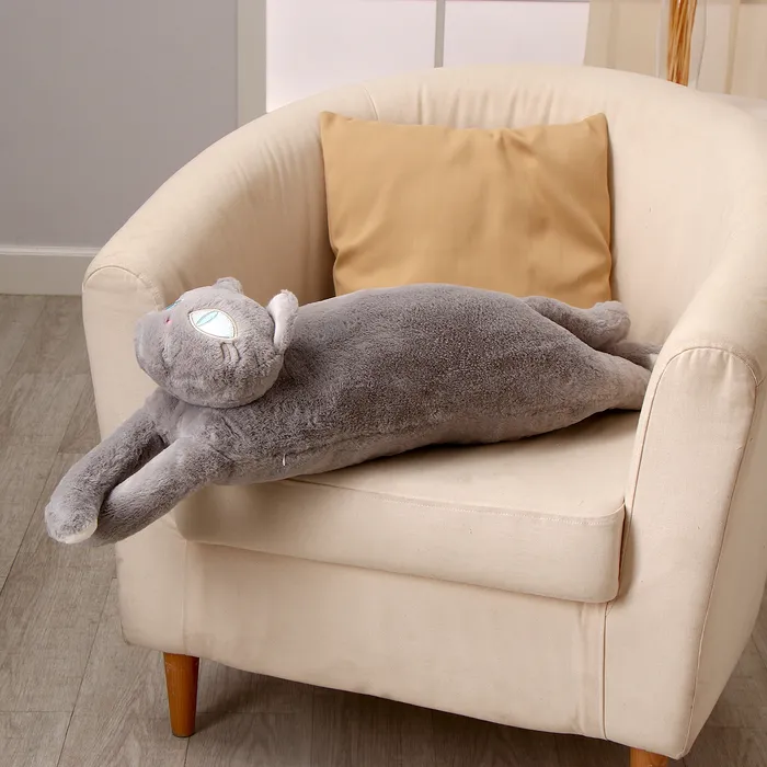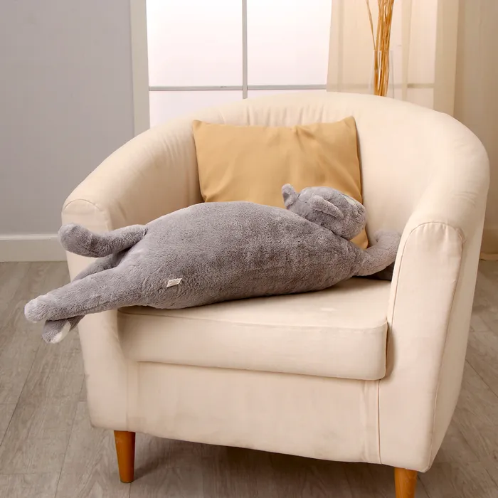 Игрушка-подушка «Серый кот» — верный спутник на пути к крепкому и безмятежному сну, а также стильный акцент в интерьере.