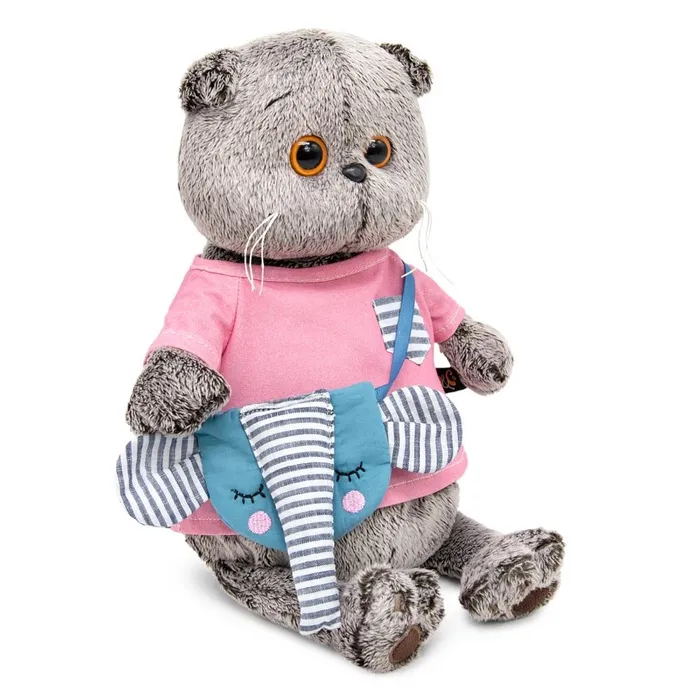 Мягкая игрушка «Кот Басик» 19 см, в футболке и с сумочкой - слоником — Характеристики