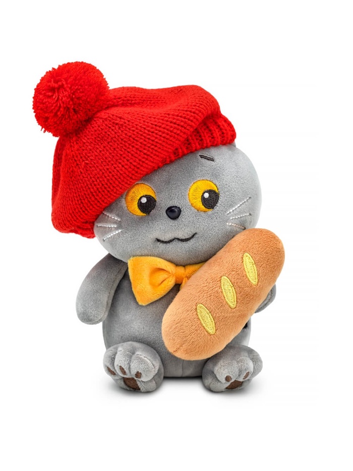 Серый кот «Басик» — это очаровательный персонаж, который станет идеальным подарком для детей и взрослых. Его мягкий искусственный мех, стильный берет и игрушечный багет в лапках создают неповторимый французский шарм. Этот немного смущённый, но невероятно обаятельный котёнок добавит радости и уюта в ваш дом.