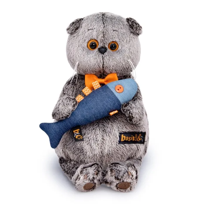 Мягкая игрушка «Кот Басик с джинсовой рыбкой», 22 см — Характеристики