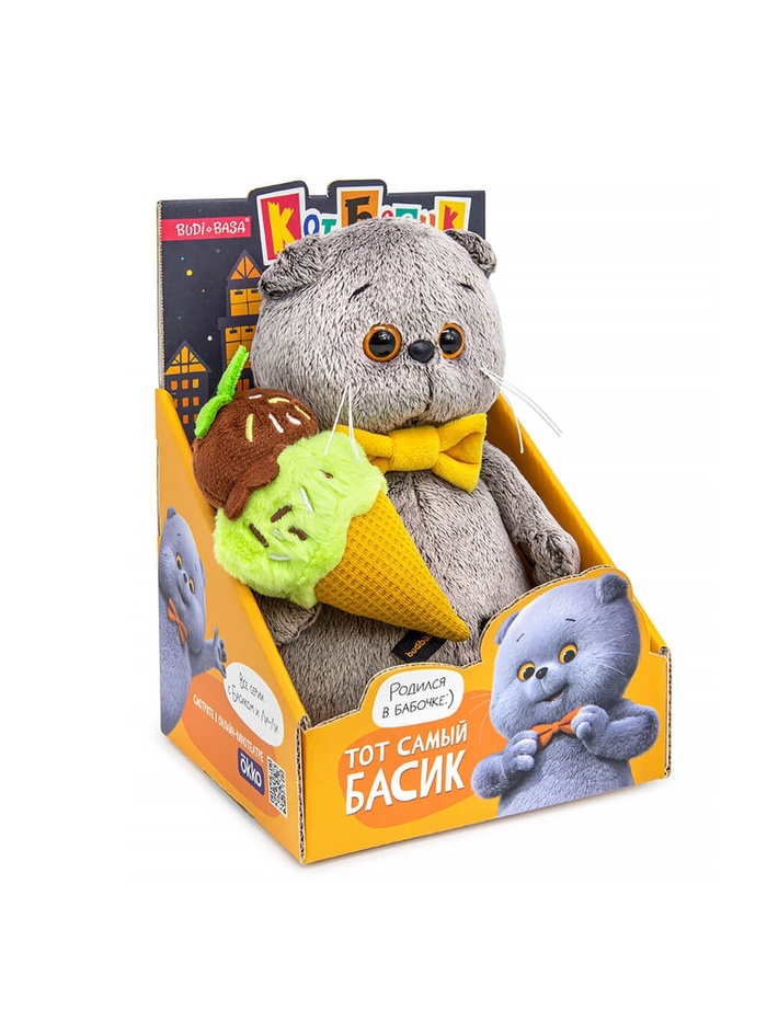 Мягкая игрушка «Кот Басик» с мороженым, 19 см — Характеристики