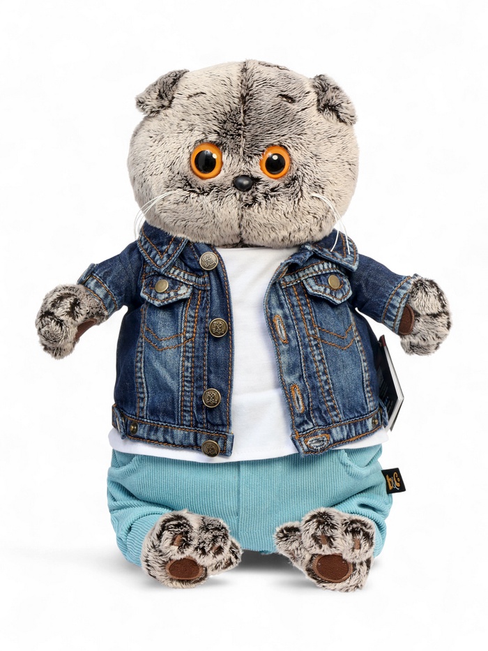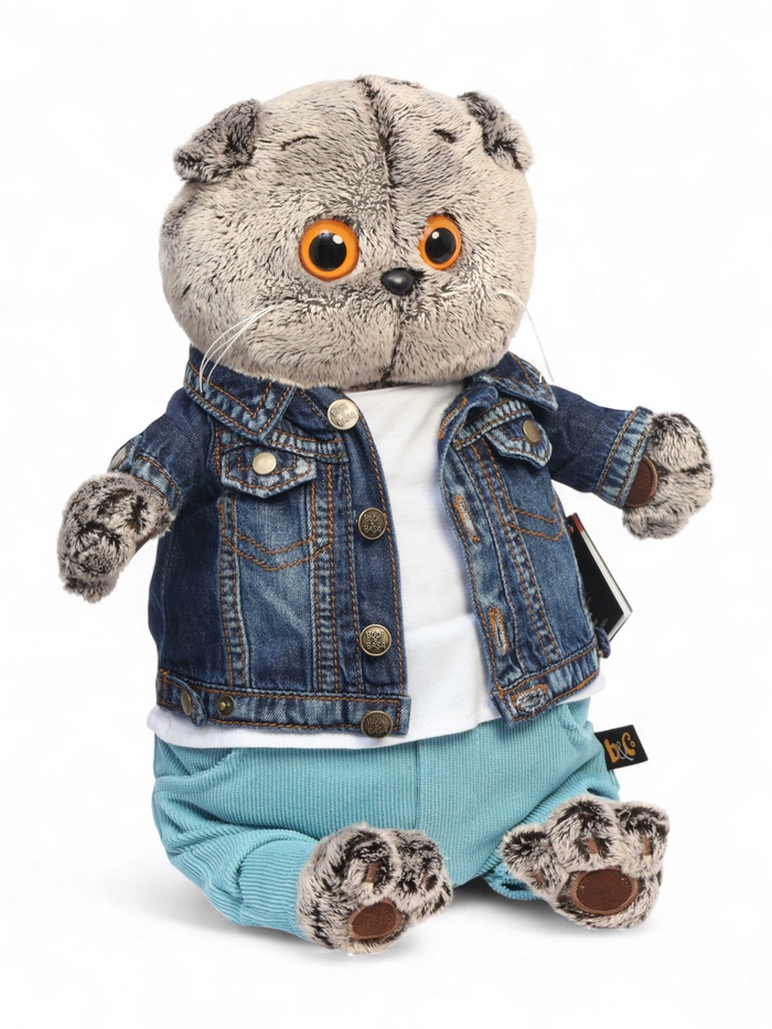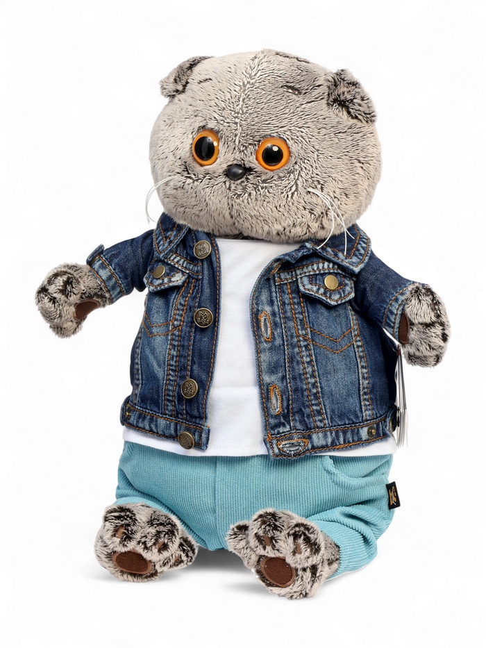 Мягкая игрушка «Кот Басик в джинсовой куртке и бирюзовых штанах», 30 см — Характеристики