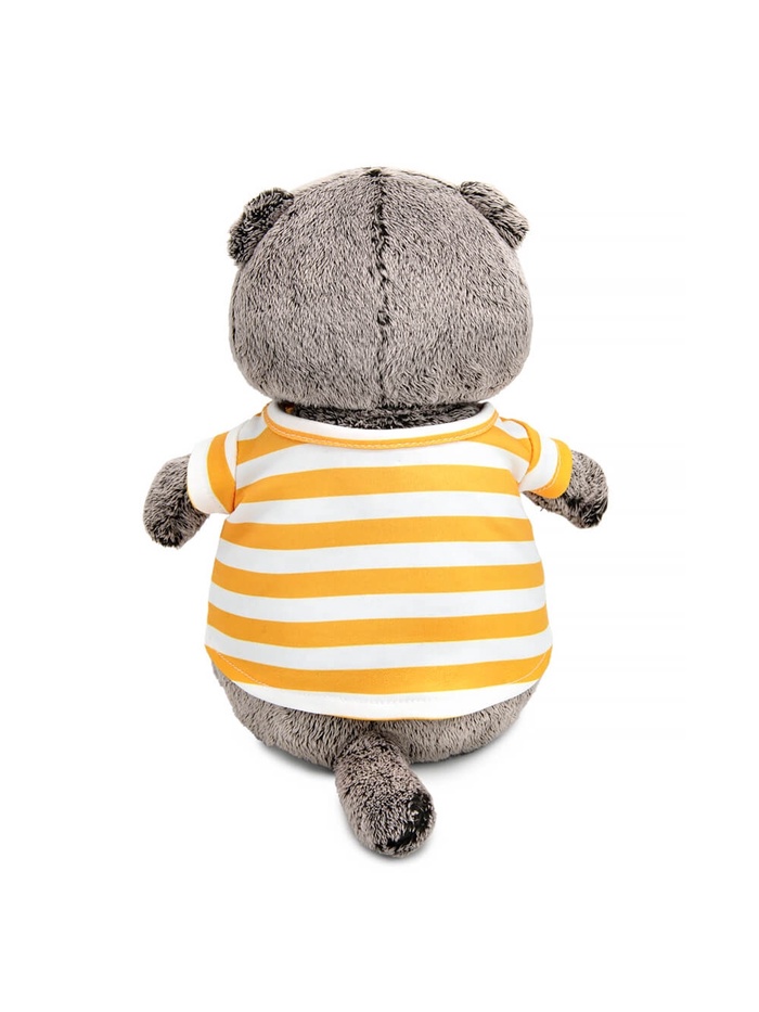 Мягкая игрушка «Кот Басик в футболке с Гусиком» — очаровательный и добродушный персонаж в повседневном образе. Яркая полосатая футболка с рисунком гусёнка делает его стильным и весёлым, а мягкий мех и забавное выражение мордочки вызывают желание обнять его. Такой Басик станет отличным подарком и уютным украшением детской комнаты.