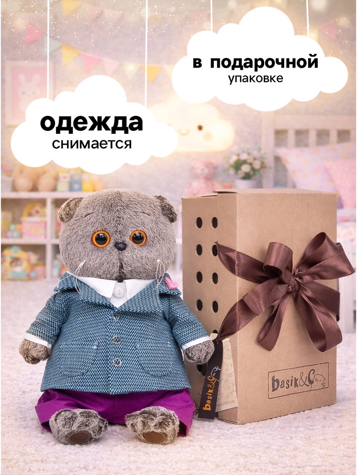 Мягкая игрушка «Кот Басик» в пиджаке с орнаментом, 22 см — Характеристики