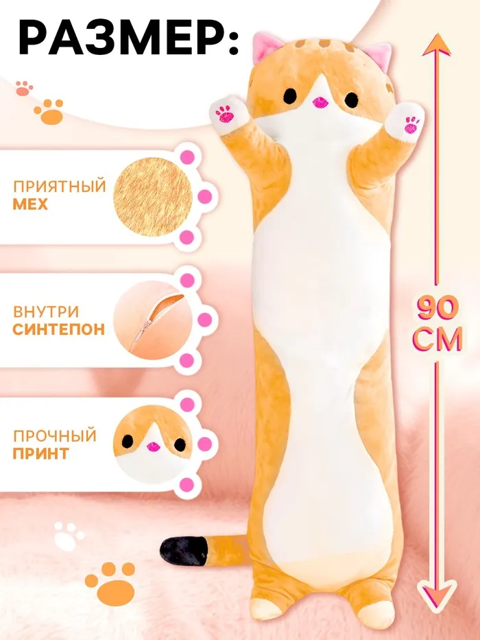Мягкая игрушка «Рыжий кот-батон» — универсальный презент для ребёнка и взрослого. Изделие выполнено из приятного на ощупь материала. Кот — практичный подарок для детей всех возрастов.
