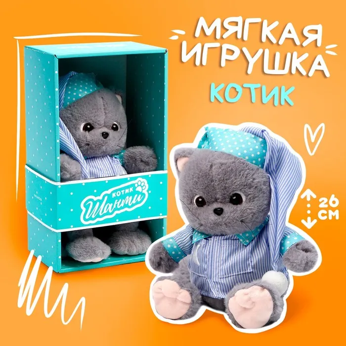 Мягкая игрушка «Кот Шанти», в пижаме, 26 см — Характеристики